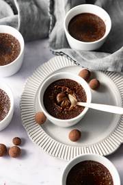 - Just before you are ready to serve, sprinkle ½ to 1 teaspoon of caster sugar on top of each custard, covering the tops with a thin layer of the sugar. Using a kitchen blowtorch, caramelise the sugar until it forms a golden glass-like glaze. Leave for a minute or two for the sugar to set, then serve.