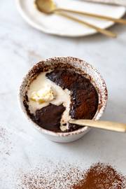 - Dust with some extra cocoa powder if desired and serve immediately topped with vanilla ice cream.