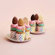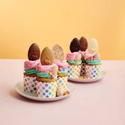 - When ready to serve, add a nest of the Persian fairy floss, and finish with a Koko Black Sprinkle Egg Pop or Bunny Egg Pop.