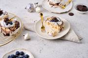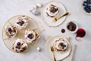 8. Garnish meringues with whipped vanilla cream, blueberries and Koko Black Marbles. Serve immediately.