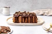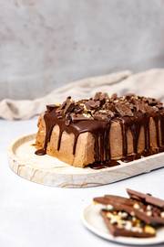 - To serve, open the plastic wrap and invert the semifreddo on to a serving plate, carefully remove the remaining plastic wrap. Drizzle with chocolate ganache and top with chopped Koko Black Milk Chocolate Christmas Pudding chocolate. Serve in slices.