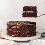 - Once the chocolate is melted, add the remaining cream and whisk until thick and glossy. Remove the chocolate cake from the fridge and poor the ganache onto the top of the cake. Use a palette knife to spread the ganache across the top and sides of the chocolate cake. Serve dusted with Koko Black Dark Chocolate Shavings.