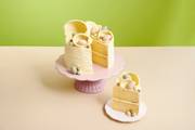 6. To assemble the cake, evenly spread the buttercream on top of each sponge and sandwich the cakes together. With a thin layer of the buttercream, create a crumb coating by icing the sides and top of the cake. Leave to set in the fridge for 10 minutes. Using a palette knife, spread the remaining buttercream over the entire cake, filling in any gaps between layers and creating a smooth surface. Put the cake in the fridge for 30-40 minutes or until the icing is firm.