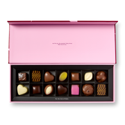 Ingredients: Milk Chocolate (Sugar, Cocoa Butter, Whole Milk Powder, Cocoa Mass, Emulsifier [Soya Lecithin], Natural Vanilla), White Chocolate (Sugar, Cocoa Butter, Whole Milk Powder, Emulsifier [Soya Lecithin], Natural Vanilla), Dark Chocolate (Cocoa Mass, Sugar, Cocoa Butter, Emulsifier [Soya Lecithin], Natural Vanilla), Thickened Cream (Cream [Contains Milk], Halal Gelatine), Almond Praline (Sugar, Almonds, Vegetable Fat, Emulsifier [Soya Lecithin]), , Strawberry Puree (Strawberry, Invert Sugar Syrup), Gianduja Milk Chocolate (Sugar, Hazelnuts, Cocoa Butter, Whole Milk Powder, Cocoa Mass, Emulsifier [Soya Lecithin]), Sugar, Hazelnuts, Mango Puree, Butter (Pasteurised Cream [From Milk], Water), Invert Sugar Syrup, White Peach Puree (Peach, Invert Sugar Syrup), Glucose Syrup, Glycerine, Mandarin Concentrate (Mandarin Concentrate, Water, Mandarin Essential Oil), Passionfruit Puree, Raspberry Puree (Raspberry, Invert Sugar Syrup), Dextrose Monohydrate, Strawberry Spirit (Water, Ethylic Alcohol, Natural Flavouring, Citric Acid [E330]), Coconut, Cocoa Butter, Yuzu Puree, Red Beet Concentrate, Freeze Dried Mango, Rose Water, Sea Salt, Vanilla Bourbon Paste (Cane Sugar, Water, Pure Madagascar Bourbon Vanilla Extract, Vanilla Beans, Thickener:Gum [Tragacanth]), Coffee Bean, Framboise Jacobert Spirit (Raspberry Spirit, Raspberry Infusion, Ethanol, Distilled Water, Raspberry Flavour, Colour [Ponceau 4r]), Citrus Pectin, Natural Colour (E160b), Citric Acid, Alcohol, Vanilla Bean.