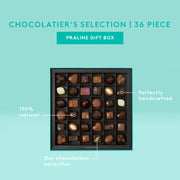 A thirty-six piece assortment of Koko's most loved pralines. Including a selection of white, milk and dark chocolate our chocolatier's selection boxes are the perfect gift, or the perfect way to treat yourself. Add a gift sleeve to say thanks, congrats or hip, hip hooray, and include your own personalised message.