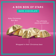 A constellation of 54% dark chocolate stars to make every Christmas wish come true, wrapped in gold foil so you can unravel the wonder waiting inside.