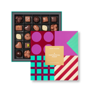 A merry medley of twenty-five white, milk and dark chocolate pralines to make each moment shine so bright! Our chocolatiers have handcrafted, picked and placed each praline in this gift box for treats to light up every occasion.