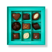 A merry medley of nine white, milk and dark chocolate pralines to make each moment shine so bright! Our chocolatiers have handcrafted, picked and placed each praline in this gift box for treats to light up every occasion.
