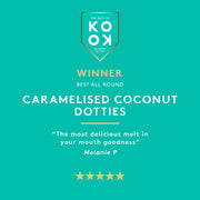 Toasted, caramelised coconut flecks in 54% dark chocolate.