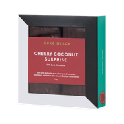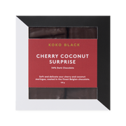 Soft and delicate sour cherry and coconut meringue, coated in the finest Belgian dark chocolate.