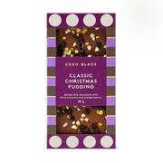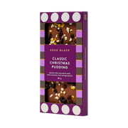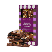 A symphony of pudding-like spices and a topping of fresh Christmas fruits shine against a backdrop of milk chocolate for a festive wish in every block.