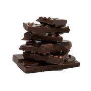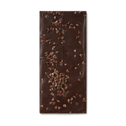 Deep and rich cocoa nibs on 80% dark chocolate.