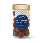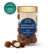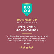 Ingredients: Dark Chocolate (50%) (Cocoa Mass, Sugar, Cocoa Butter, Soya Lecithin, Natural Vanilla), Macadamias (46%), Cocoa Powder, Milk.