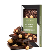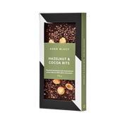 Ingredients: Dark Chocolate (88%) (Cocoa Mass, Sugar, Cocoa Butter, Soya Lecithin, Natural Vanilla), Hazelnuts (7.5%), Caramelised Cocoa Nibs (4.5%) (Cocoa Beans, Sugar, Glucose Syrup, Water), Milk.