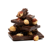 Roasted hazelnuts and caramelised cocoa nibs on 54% dark chocolate.