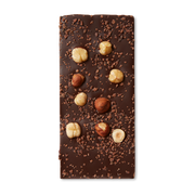 Roasted hazelnuts and caramelised cocoa nibs on 54% dark chocolate.
