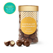 Milk Chocolate Caramelised Honey Roasted Macadamias.