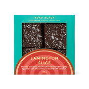 Koko’s own take on a classic little cake! A jumbly, jammy mix of 73% dark chocolate, gooey chocolate mousse and raspberry fruit jelly dipped in a party hat of chocolate and dusted with creamy coconut – fluffy-sweet morsels to marvel happy days over.