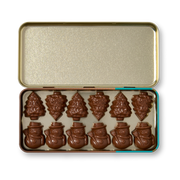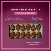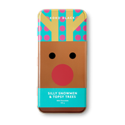 A collectible tin of merry things. Merry milk chocolate silly snowmen and topsy-turvy trees topple together in a collectable pencil tin. A perfect gift for your little stars.