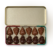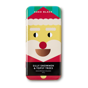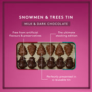 A collectable tin of merry things. Merry milk and 54% dark chocolate snowmen and trees topple together in a collectable pencil tin. A perfect gift for your little stars.