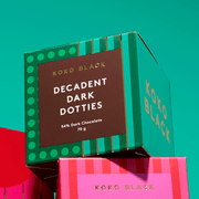 Dottie delights for all your festive days and nights! This time we dance through silky waves of scrumptious dark chocolate, crafted in Koko’s favourite dotties. Take one, two or three, and hang a little Koko on your Christmas tree.